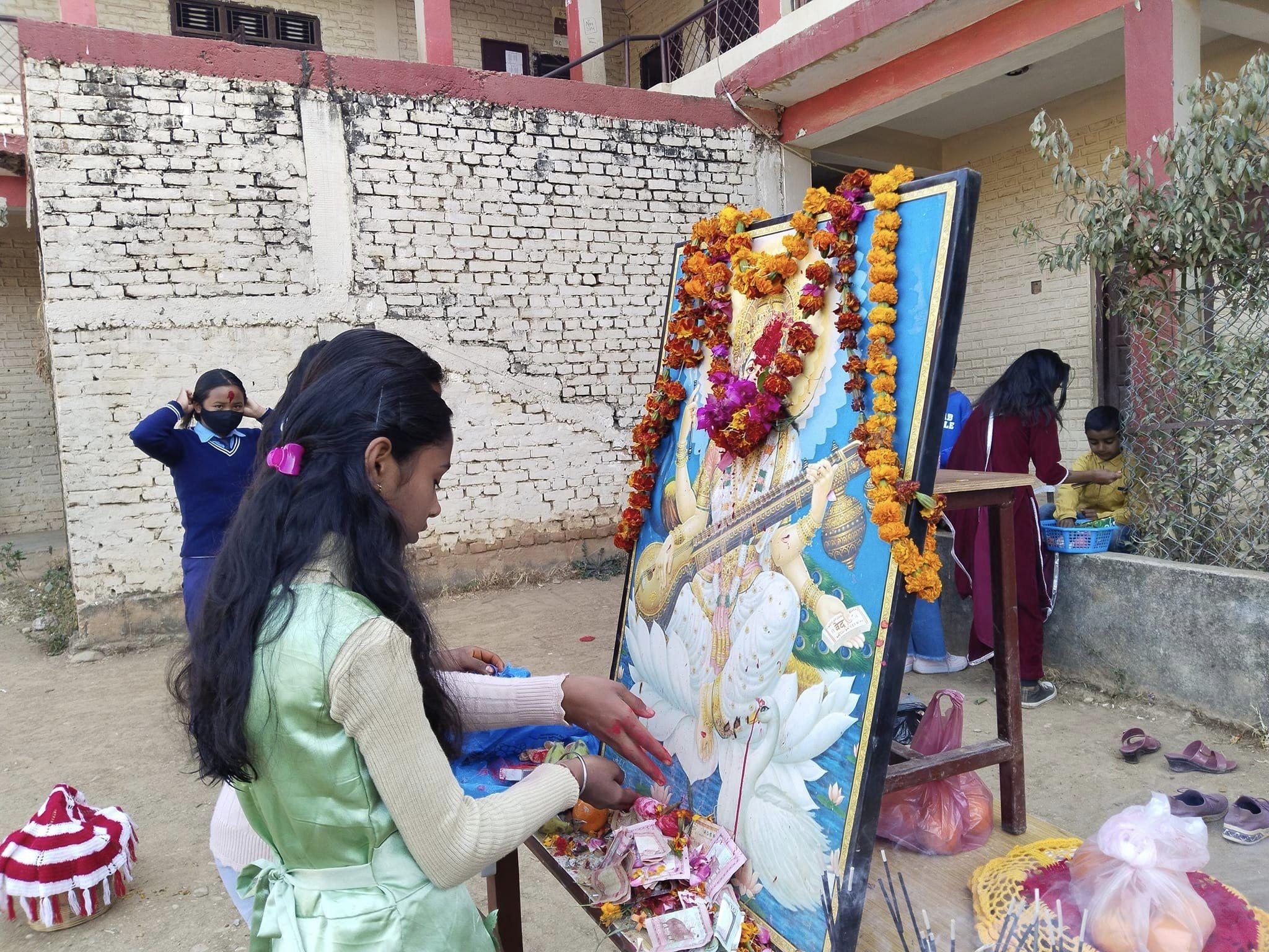 Some glimpses of Saraswati Puja at school May Goddess Saraswati reside in everyone's throat.